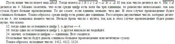 Найдите четырёхзначное натуральное число, кратное 4. сумма цифр которого равна их произведению. В ответе укажите какое-нибудь одно такое число.