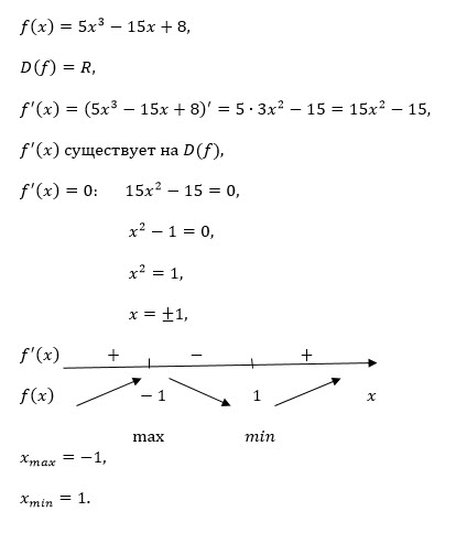 Найдите точки экстремума функции: f(x) = 5x^3-15x+8
