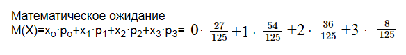 p_(1)=C^(1)_(3)[m]\frac{2}{5}\cdot (\frac{3}{5})^{2}=\frac{54}{125}[/m]