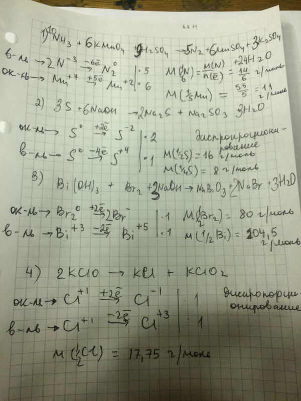 Уравняйте реакции методом электронного баланса,укажите окислитель,восстановитель и тип овр.Рассчитайте молярные массы эквивалентов окислителя и восстанлвителя