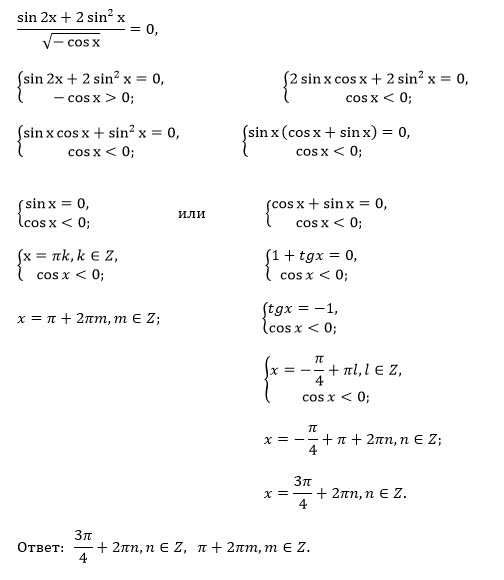 [m] \frac{sin{2x} + 2 sin^{2} x}{\sqrt{-cos{x}}} = 0. [/m]