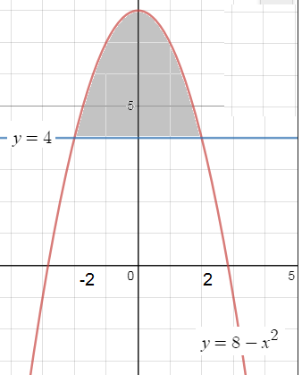 Вычислите площадь фигуры, ограниченной параболой y = 8 - x² и прямой y = 4.