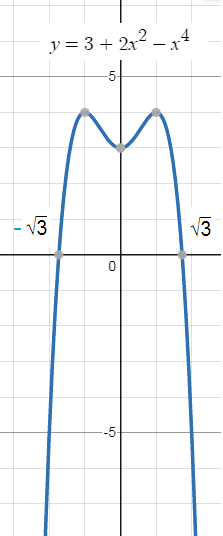 x^2=3 ⇒ x= ± sqrt(3) -Точки пересечения с осью Ох.