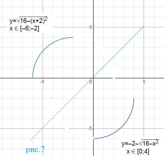 y∈ [-6;-2]; x ∈ [0;4] - четвертая часть окружности