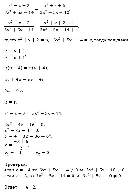(х^2+x+2)/(3x^2+5x-14)=(x^2+x+6)/(3x^2+5x-10)