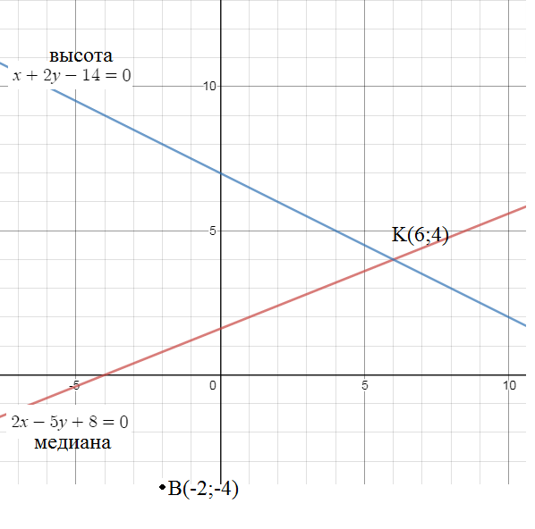 Скорее всего дана точка В и два уравнения медианы и высоты,