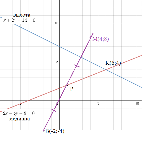 высота x+2y-14=0 и ВК не перпендикулярны,так как произведение угловых коэффициентов взаимно перпендикулярных прямых должно быть равно (-1).