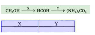 В заданной схеме превращений CH3OH —> HCOH —> (NH4)2CO3 веществами X и Y соответственно являются: 1) СuО 2) Сu(ОН)2 3) NH3 4) СO2 5) Ag20 (NH3*H2O)