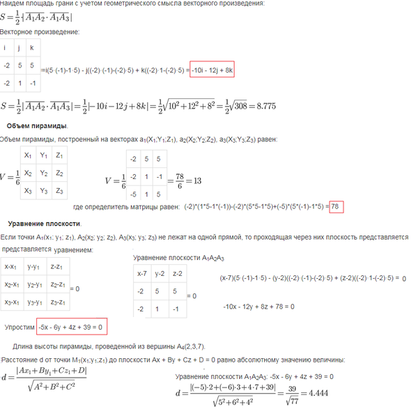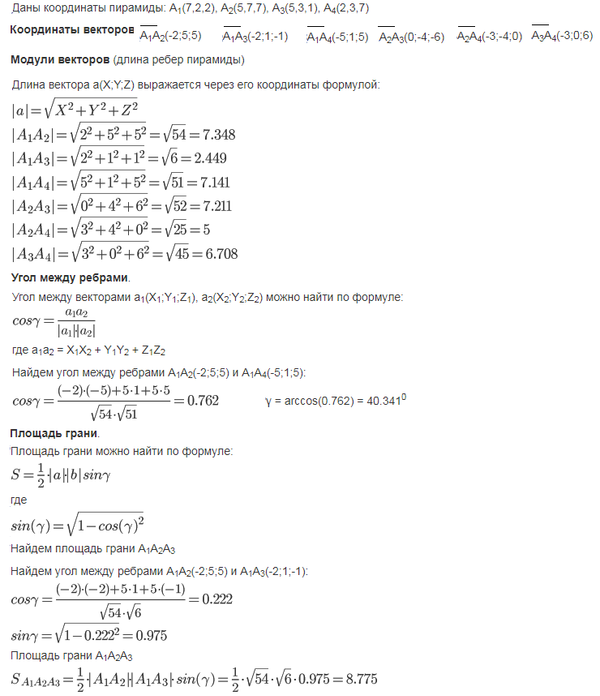 Даны координаты вершин пирамиды A1A2A3A4: A1(7;2;2), A2(5;7;7), A3(5;3;1), A4(2;3;7).