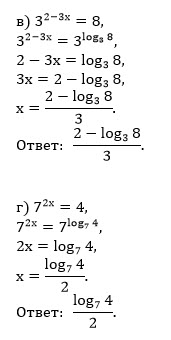 в) 3^(2 - 3x) = 8 г) 7^(2x) = 4 ...
