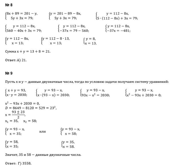 9. Сумма двух двузначных чисел равна 93, а их произведение равно 2030. Найдите эти числа. В ответе запишите эти числа без пробела и знаков препинания в порядке возрастания.