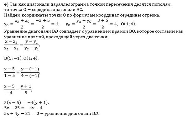 4. уравнение диагонали BD