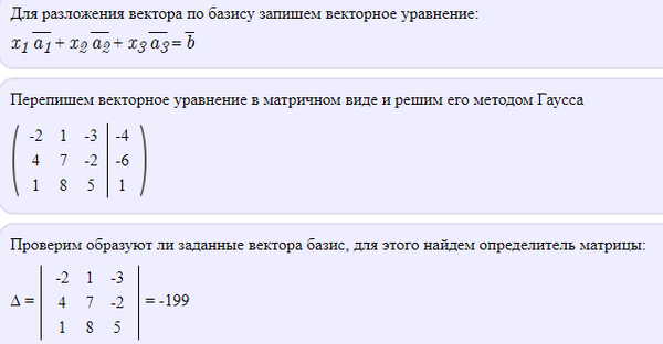 Даны векторы a = (a1; a2; a3), b = (b1; b2; b3), c = (c1; c2; c3), d = (d1; d2; d3) в некотором базисе. Показать, что векторы a, b, c обра- зуют базис и найти координаты вектора d в этом базисе.