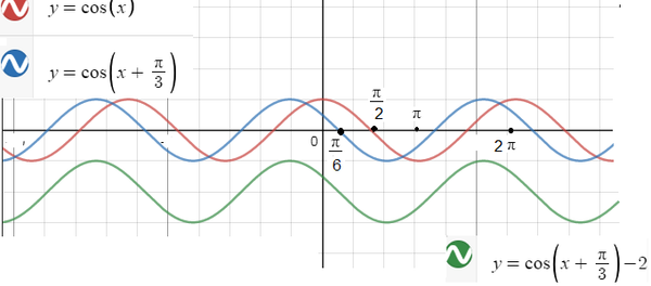 [green]y=cos(x+[m]\frac{\pi}{3}[/m]) - 2[/green] получаем из графика