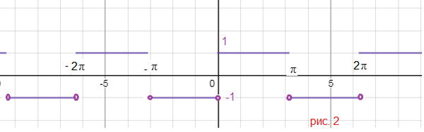 прямую [b] y=1[/b] на [0+2πn, π+2πn], n ∈ Z,