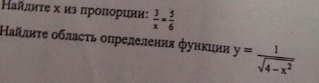 Найдите x из пропорции 3/x=5/6...