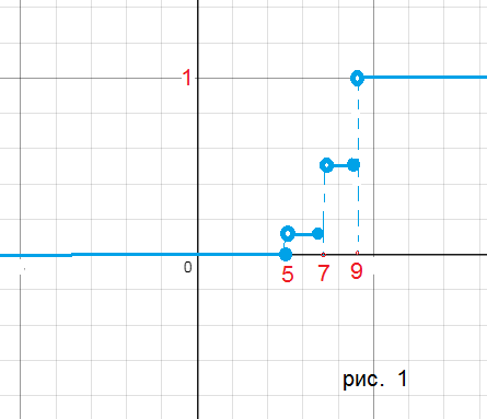 p(X ≤ любого числа после 9)=p(X=5)+p(X=7)+p(X=9)=0,1+0,4+0,5=1
