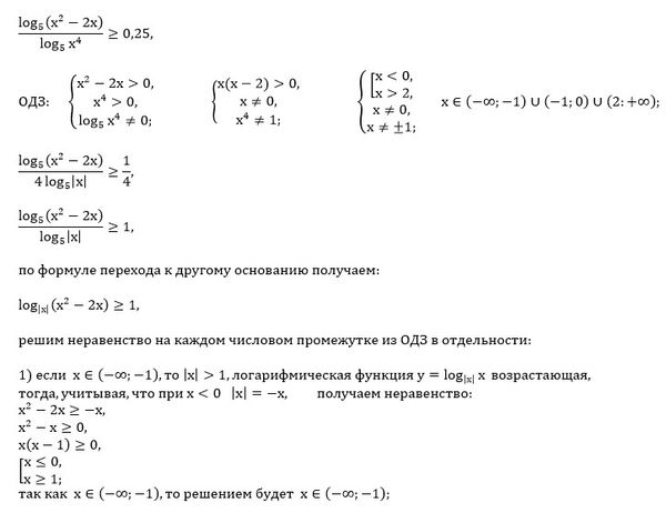 [m]\frac{log_{5}|x|+log_{5}|x-2|}{4log_{5}|x|}\geq 0,25[/m]