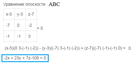ж) косинус угла между координатной плоскостью Оxy и плоскостью ABC.