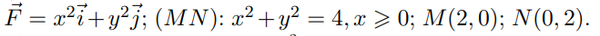 A= ∫(F,dr)=∫F_(x)dx+F_(y)dy= ∫x^2dx+(4-x^2)dy y^2=4-x^2 dy=xdx/sqrt(4-x^2) A=∫x^2dx+(4-x^2)xdx/sqrt(4-x^2)=-16/3 интеграл от 2 до 0