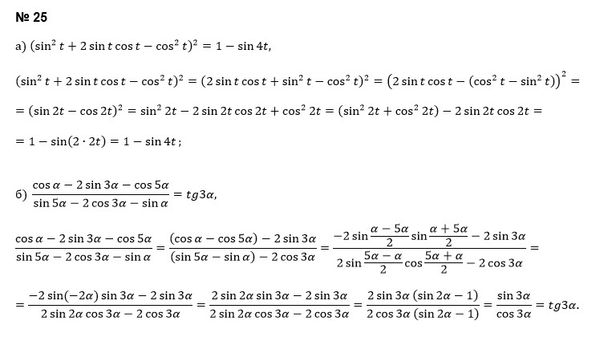 [m]\frac{cos\alpha -2sin3\alpha -cos5\alpha }{sin5\alpha-2cos3\alpha-sin\alpha }=\frac{2sin3\alpha (sin2\alpha -1)}{2cos3\alpha( sin2\alpha -1)}=\frac{sin3\alpha }{cos3\alpha }=tg3\alpha[/m]