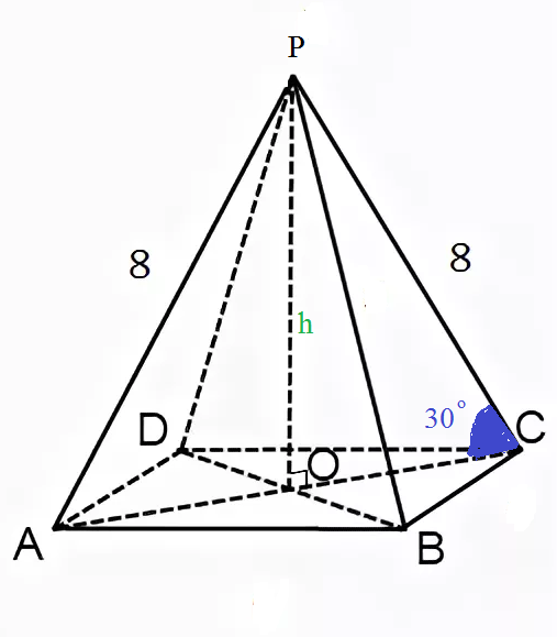 h=PO=4 ( катет против угла в 30 градусов равен половине гипотенузы)