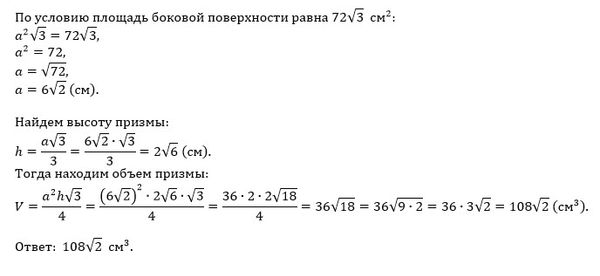 2.3. Найдите область определения функции f(x)= .... 2.4. Диагональ боковой грани правильной треугольной призмы образует с основанием угол 30°. Найти объем призмы, если площадь ее боковой поверхности 72√3 см².