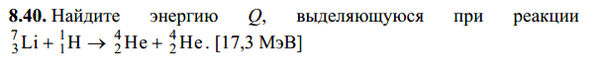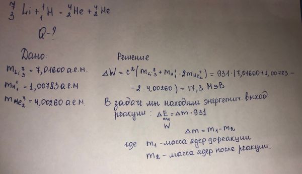 Найдите энергию Q, выделяющуюся при реакции