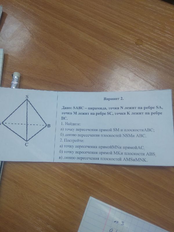 Дано SABC - пирамида, точка N лежит на ребре SA, точка M лежит на ребре SC, точка K лежит на ребре BC.