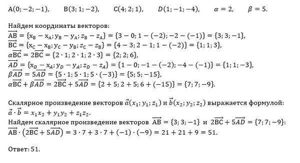 Здравствуйте, помогите решить задачу по высшей математике. даны точки А (0;-2;-1), В(3;1;-2), С (4;2;1), D(1;-1;-4), α =2, β =5. Найти ПР. ав ( α вс+ β ад). Я честно говоря даже понять не могу, что значит "пр" производная или произведение, ничего не могу найти подобного.