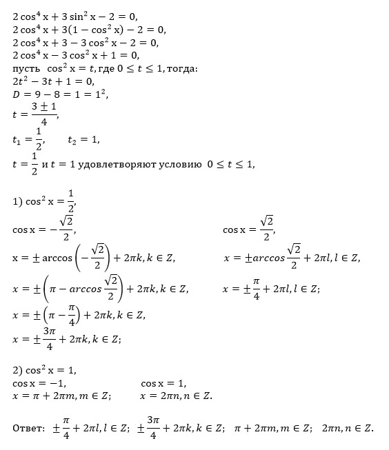 2cos^4x+3 sin^2x - 2 =0...