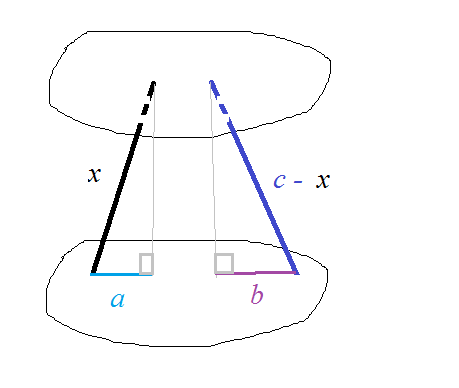 О т в е т. (c^2+a^2-b^2)/2c и (c^2+b^2-a^2)/2c