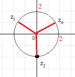 Точки z_(o);z_(1);z_(2) делят окружность на три ( потому что корень третьей степени) равные части, каждая по 120 градусов