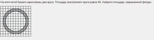 На клетчатой бумаге нарисованы два круга. Площадь внутреннего круга равна 48. Найдите площадь закрашенной фигуры.