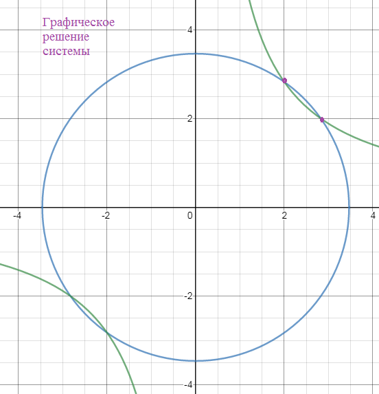 Значит возможны 4 точки пересечения окружности и гиперболы в 1-й и 3-ей четвертях