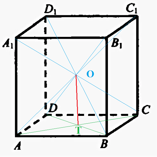 Диагонали параллелепипеда в точке пересечения делятся пополам.