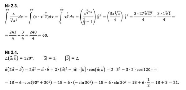 2.3. Вычислите ... 2.4. Угол между векторами a и b равен 120°. Найдите a (2a - b), если |a| = 3; |b| = 2.