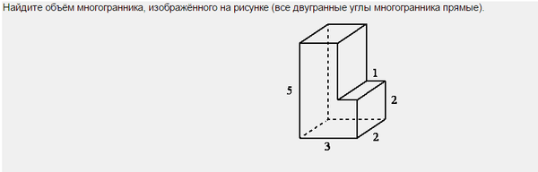 Найдите объём многогранника, изображённого на рисунке (все двугранные углы многогранника прямые).