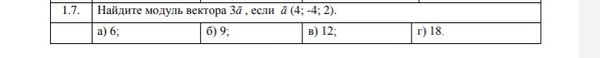 1.7. Найдите модуль вектора ... 3.3. Через сторону нижнего основания и противолежащую вершину верхнего основания правильной треугольной призмы проведена плоскость, образующая с плоскостью основания угол 60°. Площадь образовавшегося сечения равна 8sqrt(3) см2. Найдите объем призмы.