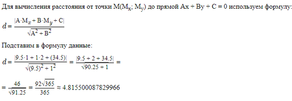 2) Найдем расстояние от точки до прямой