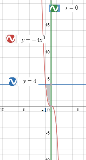 V_(тела вращения)=V_(цилиндра)-V(криволинейного конуса)= =π ∫ ^(0)_(-1)(4^2- (-4x^3)^2)dx=πR^2*H- 16π ∫ ^(0)_(-1)(x^6)2dx= =π*4^2*1-π(16x^7/7)|^(0)_(-1)= =16π-π*(16/7)=[b]96π/7[/b]