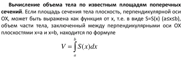 Решение должно содержать формулы, применяемые при решении задачи. Воспользуйтесь правилами интегрирования и таблицей неопределённых интегралов. Вычислить объём тела, заданного представленными уравнениями, используя его поперечные сечения