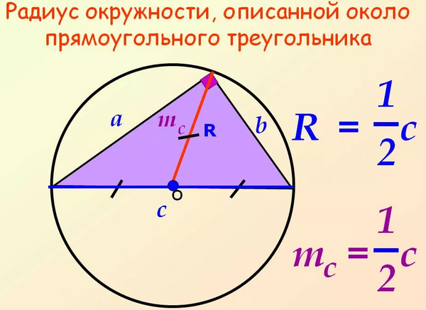 [i]Гипотенуза[/i] прямоугольного треугольника является [red]диаметром [/red]описанной окружности, поэтому