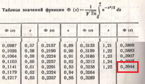 Ф(x_(2))=Ф(1,25)=0,3944 ( cм таблицу 2)