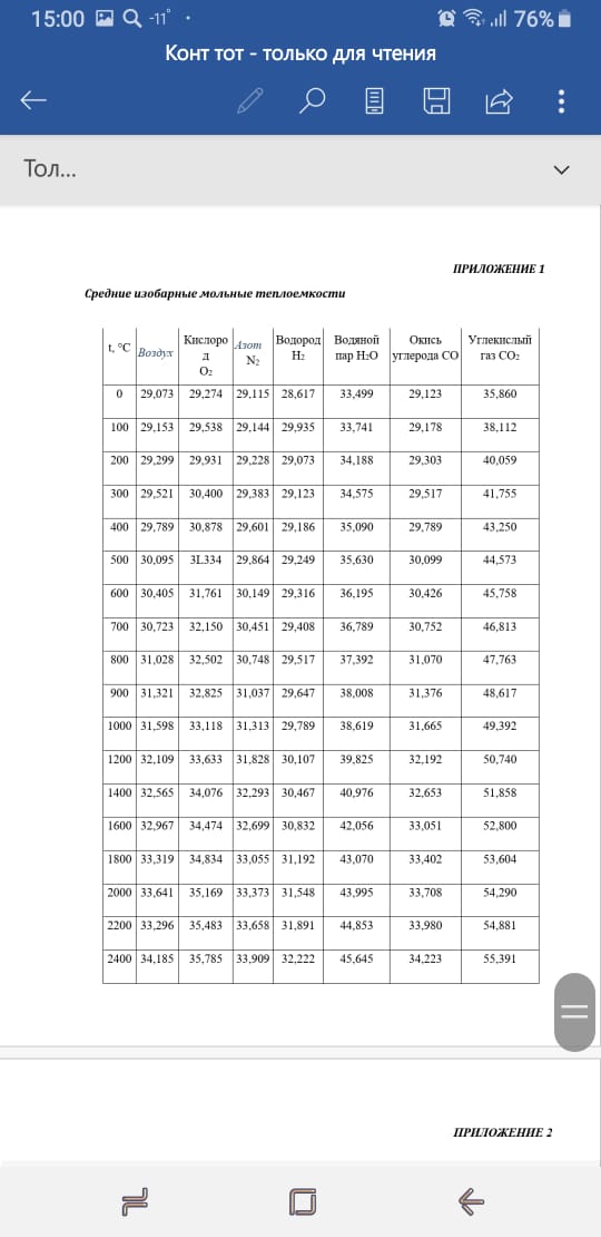 зависимость величины теплоемкости от температуры см.в приложении 1