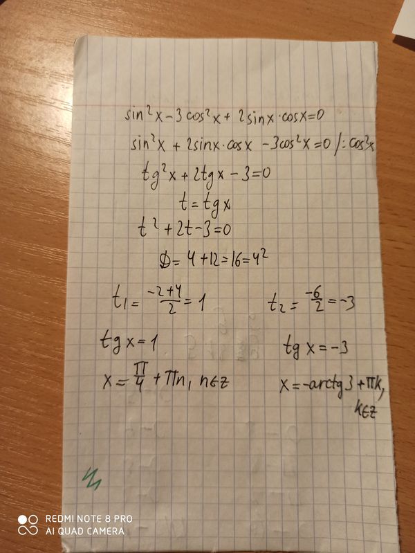 sin²x - 3cos²x + 2 sin x cos x = 0.