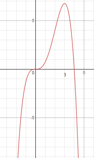 y`=3x^2-x^3 y`=0 3x^2-x^3=0 x^2*(3-x)=0 x=3 - точка максимума, производная меняет знак с + на - y``=6x-3x^2 y``=0 6x-3x^2=0 3x*(2-x)=0 x=0; x=2 - точки перегиба