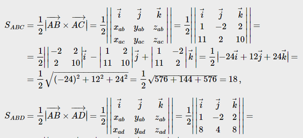 Даны координаты вершин пирамиды ABCD Найти: 1)Координаты и модули векторов AB,CD,AD 2)Угол между векторами AB и AC 3)Площадь основания ABC 4)Обьём пирамиды ABCD A(-5;0;1) B(-4;-2;3) C(6;2;11) D(3;4;9)