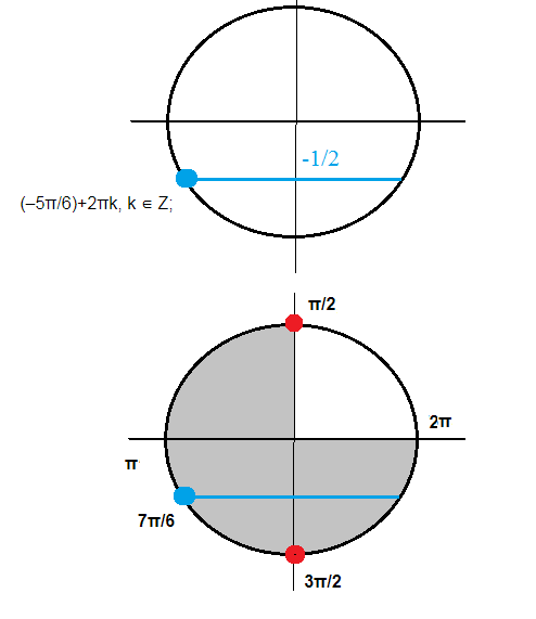 О т в е т. (-5π/6)+2πk, k ∈ Z; (π/2)+πn, n ∈ Z
