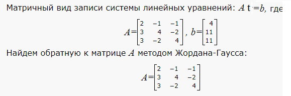 Дана система трех линейных уравнений с тремя неизвестными. Требуется записать систему в матричной форме и решить ее средством матричного исчисления 2х-y-z=4 3x+4y-2z=11 3x-2y+4z=11